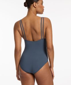 Women’s One Piece Swim Jetset Double Strap One Piece – Steel Blue
