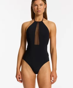 Women’s One Piece Swim Jetset Lure High Neck One Piece – Black
