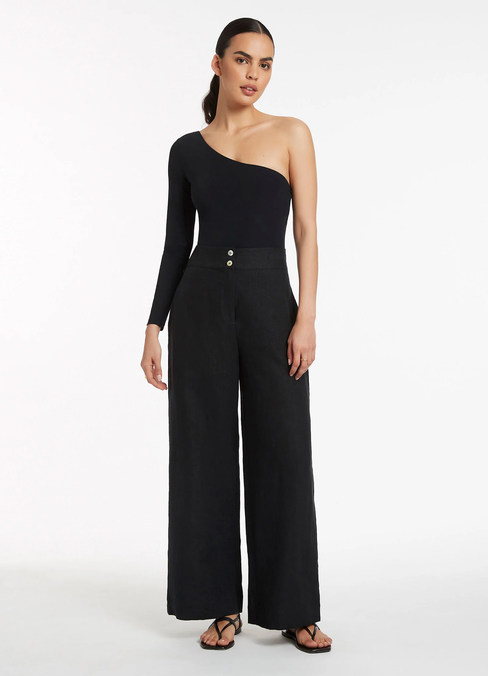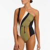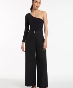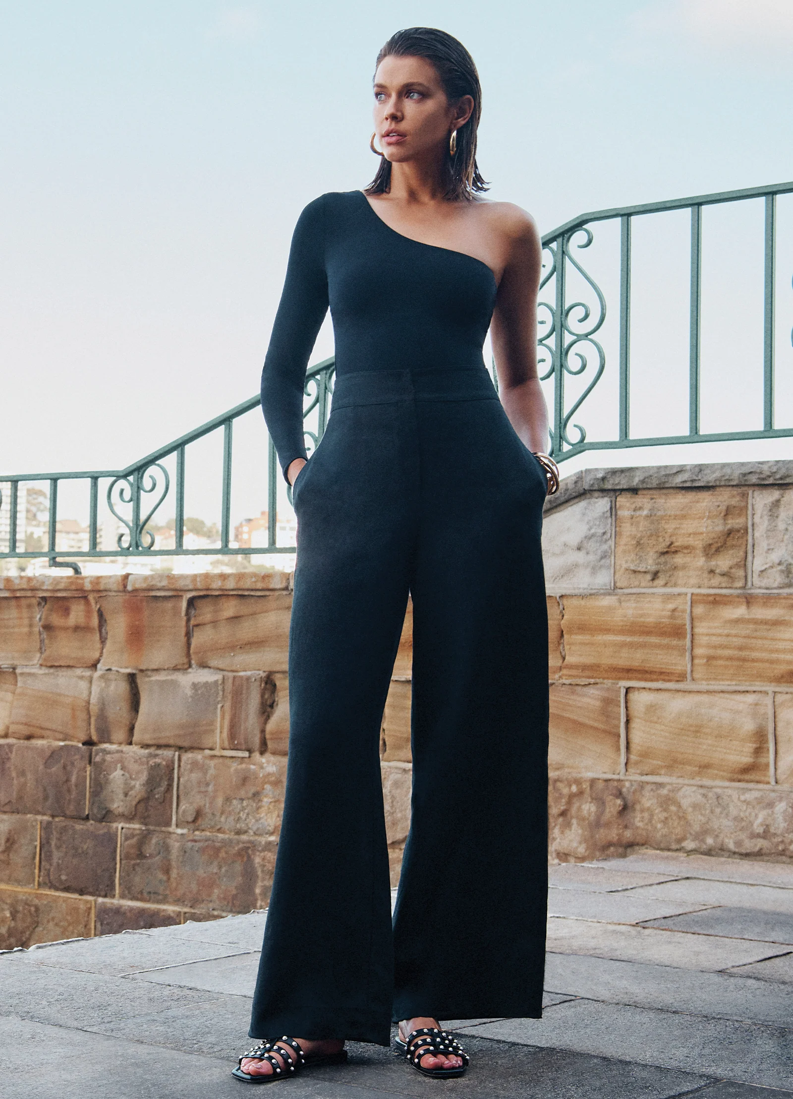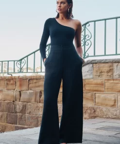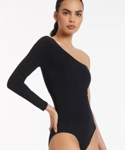 Women’s One Piece Swim Jetset One Shoulder Long Sleeve One Piece – Black