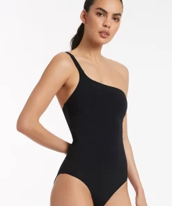 Women’s One Piece Swim Jetset One Shoulder One Piece – Black