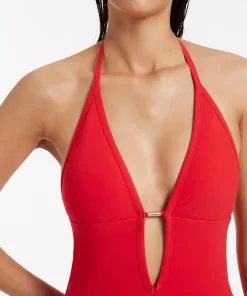 Women’s One Piece Swim Jetset Plunge One Piece – Cherry