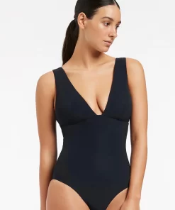 Women’s One Piece Swim Jetset Plunge One Piece – Deep Navy