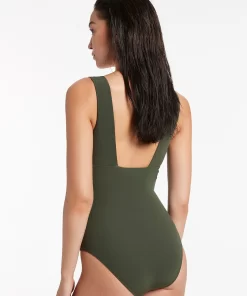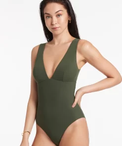 Women’s One Piece Swim Jetset Plunge One Piece – Olive