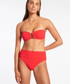 Women’s Jetset Fold Down High Waisted Bikini Bottom – Cherry