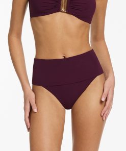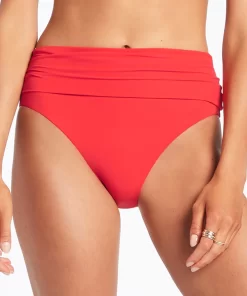Women’s Jetset Fold Down High Waisted Bikini Bottom – Cherry