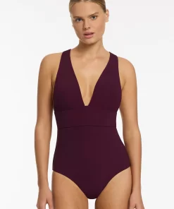Women’s One Piece Swim Jetset Plunge One Piece – Tide | Tide