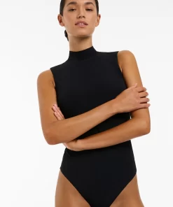 Women’s One Piece Swim Jetset Sleeveless High Neck One Piece – Black